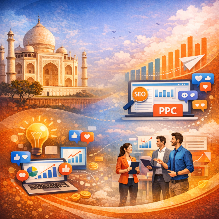 We are the best digital marketing agency in Tajganj, Agra, dedicated to helping businesses of all sizes achieve remarkable growth online. With years of experience in SEO, social media marketing, PPC, content creation, and website development, we craft customized strategies that drive real results. Our team believes in blending creativity with data-driven solutions to ensure every campaign delivers maximum impact. At our agency, your brand’s success is our top priority, and we are committed to making your business stand out in the competitive digital landscape.